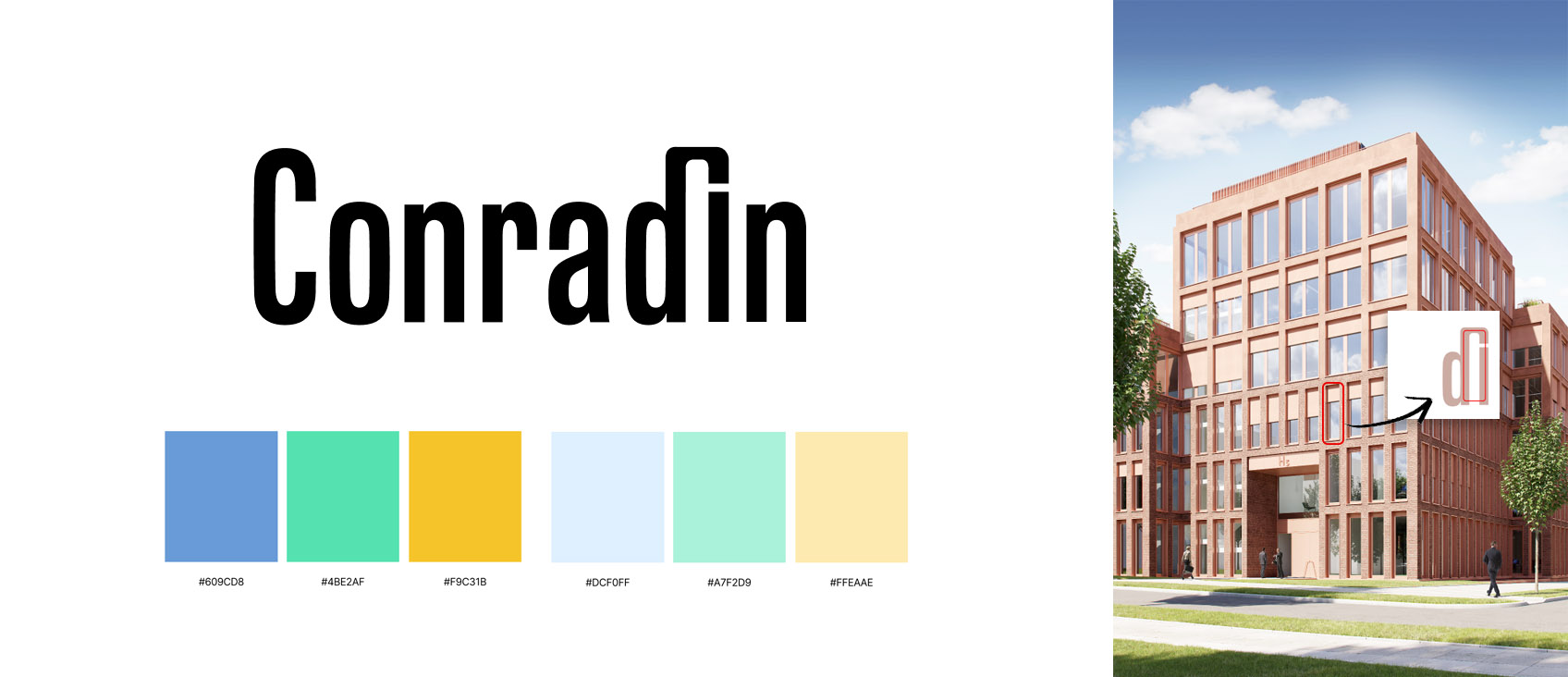 In der Gestaltung des Logos erachten wir es als wichtig, sich auf wenige Wesensmerkmale zu konzentrieren. In dem finalen Entwurf waren wir inspiriert von der langestreckten, reckeckigen Form, welche durchgängig die Architektur des Gebäudes charakterisiert: vom Grundriss bis zur Fensterfassade.