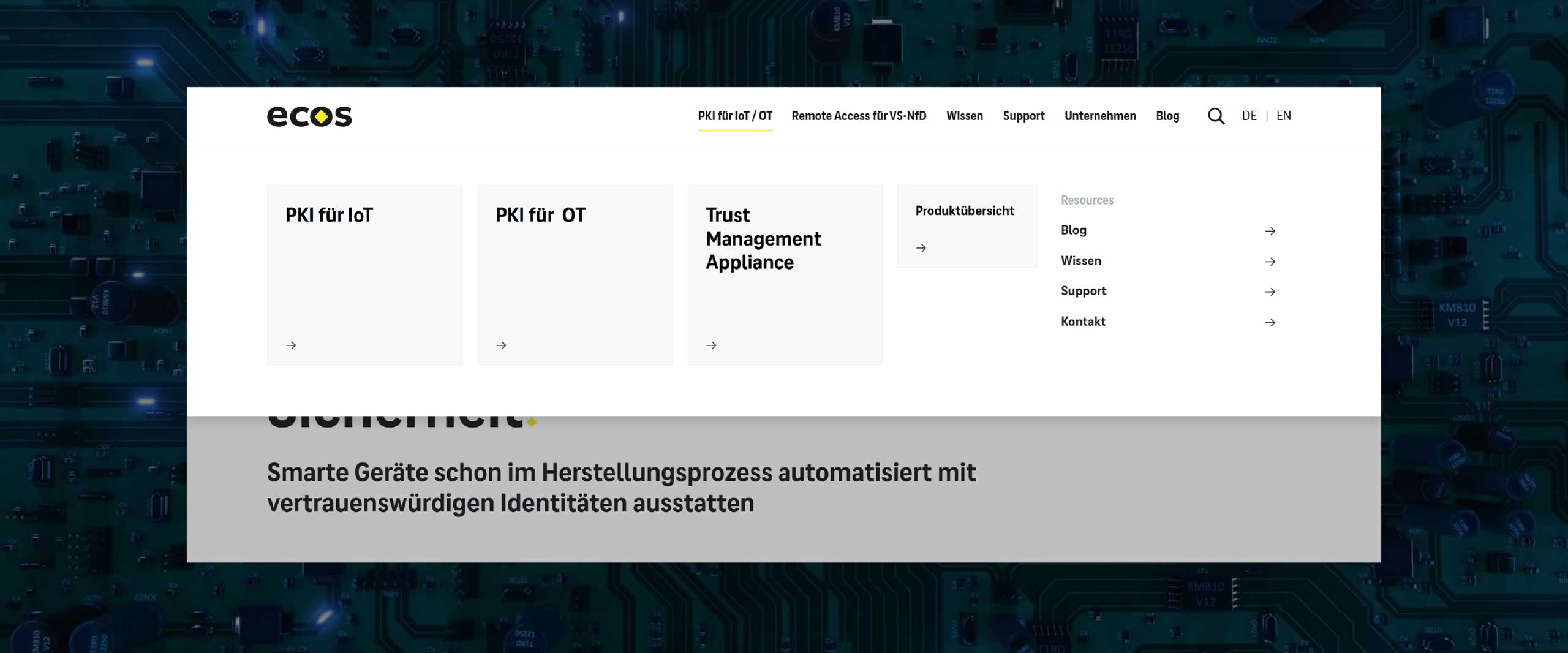 Mit dem Relaunch der Webseite wollte ECOS sich als Partner für Kunden mit höchsten Ansprüchen positioniert sehen. Der Auftritt sollte ein Unternehmen vorstellen, welches durch seine Agilität und Zukunftsausrichtung international ganz oben mitspielt: cutting edge, vibrierend vor Energie und gleichzeitig absolut verlässlich - auch bei extrem komplexen Anforderungen.