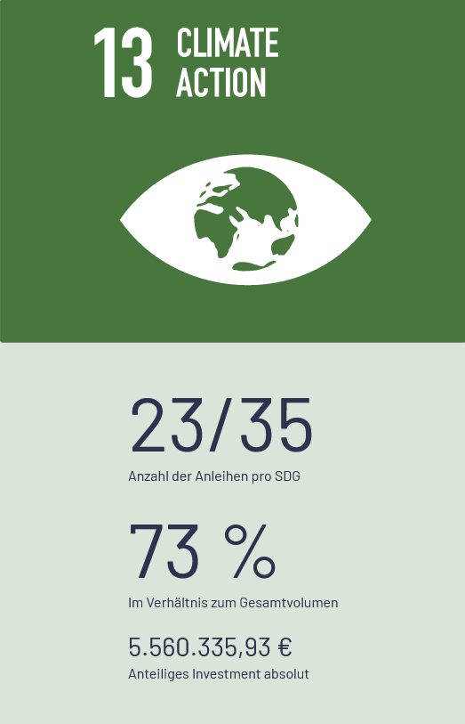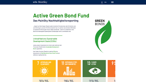Der Online Impact Report bietet einen größeren Mehrwert an, als die reine Menge an eingespartem CO2e. Für den Impact Report wurden die von der UN definierten Ziele für nachhaltige Entwicklung (Sustainable Development Goals, SDGs) als Basis genommen, um Rahmenbedingungen zu schaffen. In einem zweiten Schritt hat MainSky jedes ihrer Investments dahingehend überprüft, welches SDG unterstützt wird, und zu welchem Anteil. Diese Zahlen werden ebenfalls quartalsweise aktualisiert und im CMS hinterlegt.