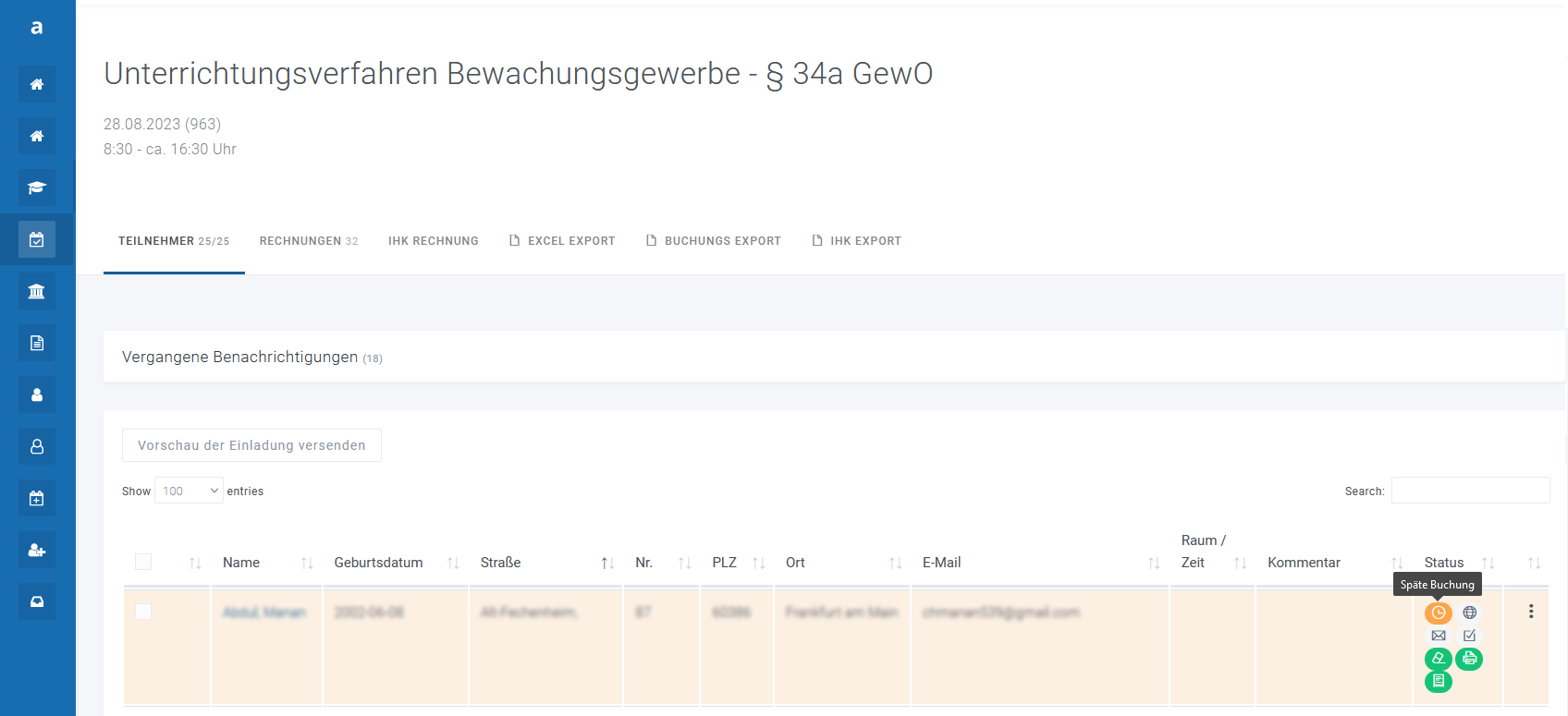 - Export von Teilnehmerlisten für Partnerorganisationen (z.B. IHKs)