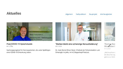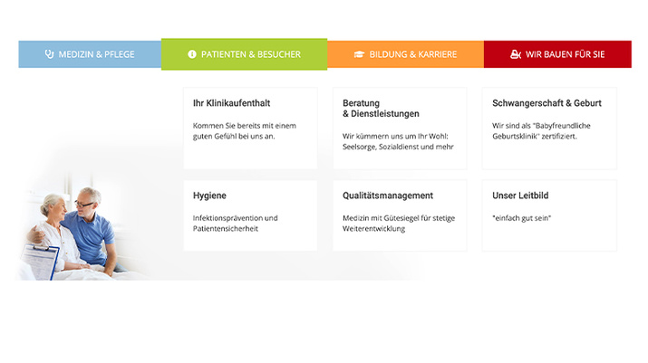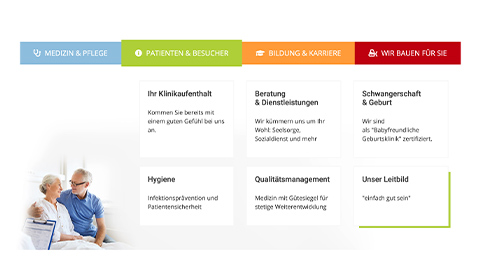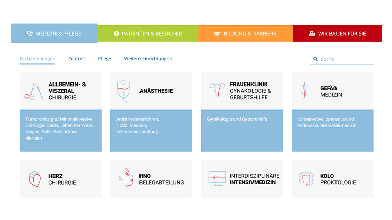 Die Entwicklung eines Klinik-Portals ist in vielerlei Hinsicht eine besondere Herausforderung. Nicht zuletzt besteht ein Krankenhaus dieser Größe aus mehreren dutzend Fachabteilungen und medizinischen Zentren, welche teilweise völlig unterschiedliche Anforderungen an Außendarstellung und Kommunikation stellen.