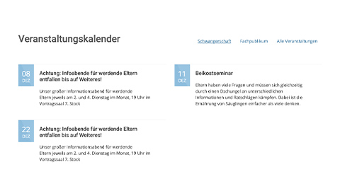 Für diesen Internetauftritt haben wir etliche Funktionen individuell entwickelt. Hierzu gehören z.B. Stellenbeschreibungen, Veranstaltungs- und Newsmodul, Mediathek, dynamisch verknüpfte Personenprofile uvm.